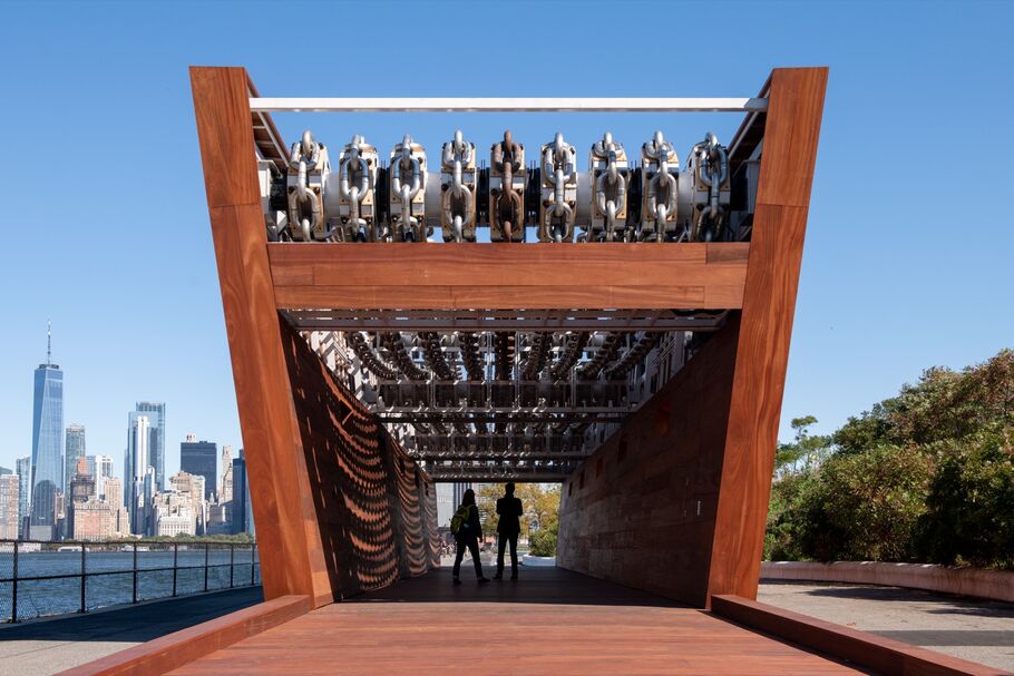 Монументальная кинетическая инсталляция состоит из двухсот рядов стальных цепей, непрерывно катящихся по деревянной конструкции, напоминающей корпус корабля. Арт-объект отсылает к истории рабства.