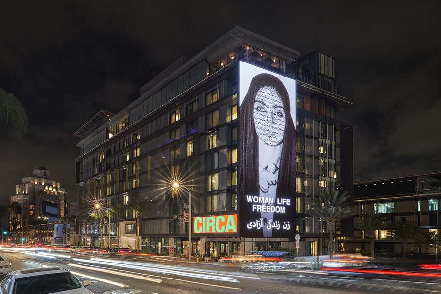 Эта работа посвящена памяти иранки Махсы Амини, которая скончалось после задержания «полицией нравов» по обвинению в неправильном ношении хиджаба. Арт олицетворяет борьбу за свободу и основные права человека.