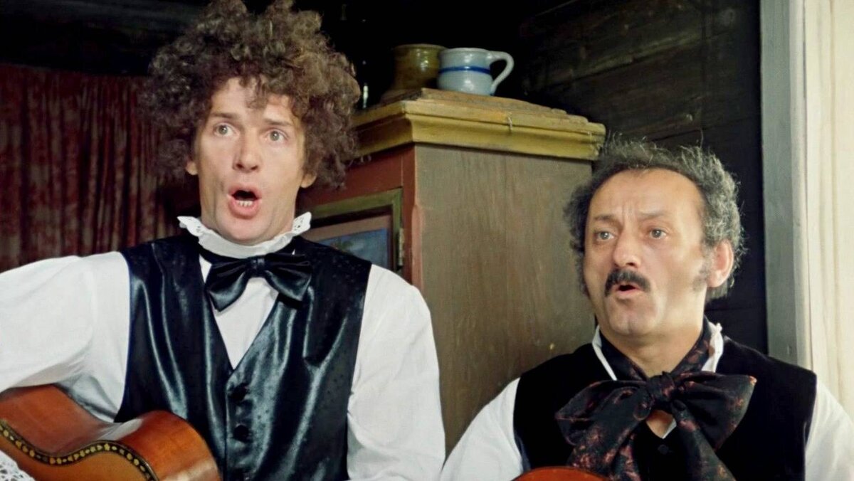 Постоянный сценарист Марка Захарова Григорий Горин непочтительно сделал из велеречивой готики Алексея Толстого ироничный балаган, раздерганный народом на цитаты. Солдаты на учениях маршировали под бессмысленную песню «Уно моменто», исполняемую свитой графа с такой дьявольской серьезностью, что этот номер мог бы поставить «Монти Пайтон». Всенародный Мюллер Леонид Броневой в роли невозмутимого доктора демонстрировал лучшие образцы русского deadpan-юмора — почти такого же, как английский, но с философским уклоном.