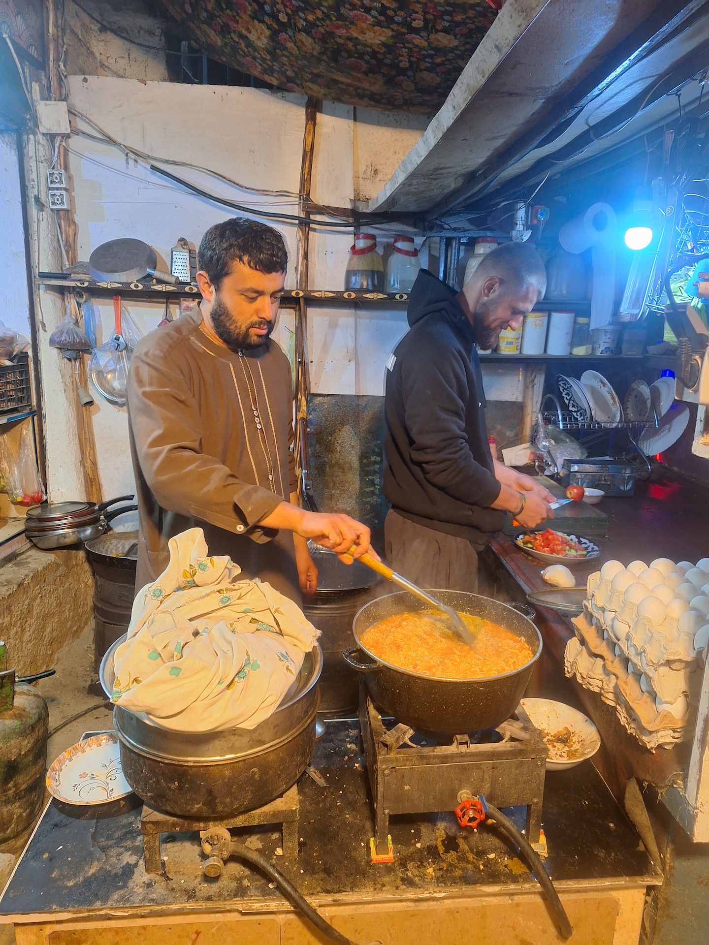 Затем появляется чай. В горных районах — это чаще всего шир-чай: крепкий чай на молоке с добавлением топленого масла, коровьего или ячьего жира. Лепешку ломают, макают в эту смесь. Иногда туда же добавляют размолотый грецкий орех. Получается плотный, солоноватый, сытный напиток. В горах это идеальная еда: соль компенсирует электролиты, жиры дают энергию и «смазку» для мозга, молоко — белок. Афганцы любят повторять, что чай у них едят, а хлеб — пьют.