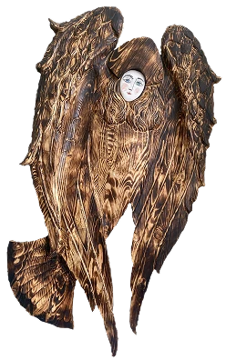 «Как-то раз нам пришла идея сделать сиринов. Они виделись деревянной массой — бурлящей, тёмной. Тогда мы подумали, что на контрасте с деревом нужно сделать светлые вставки. Это был эксперимент — мы нашли сочетание живописи и деревянного рельефа, белой керамики и обожженного дерева. Сейчас мы продолжаем наши искания на этом поле»