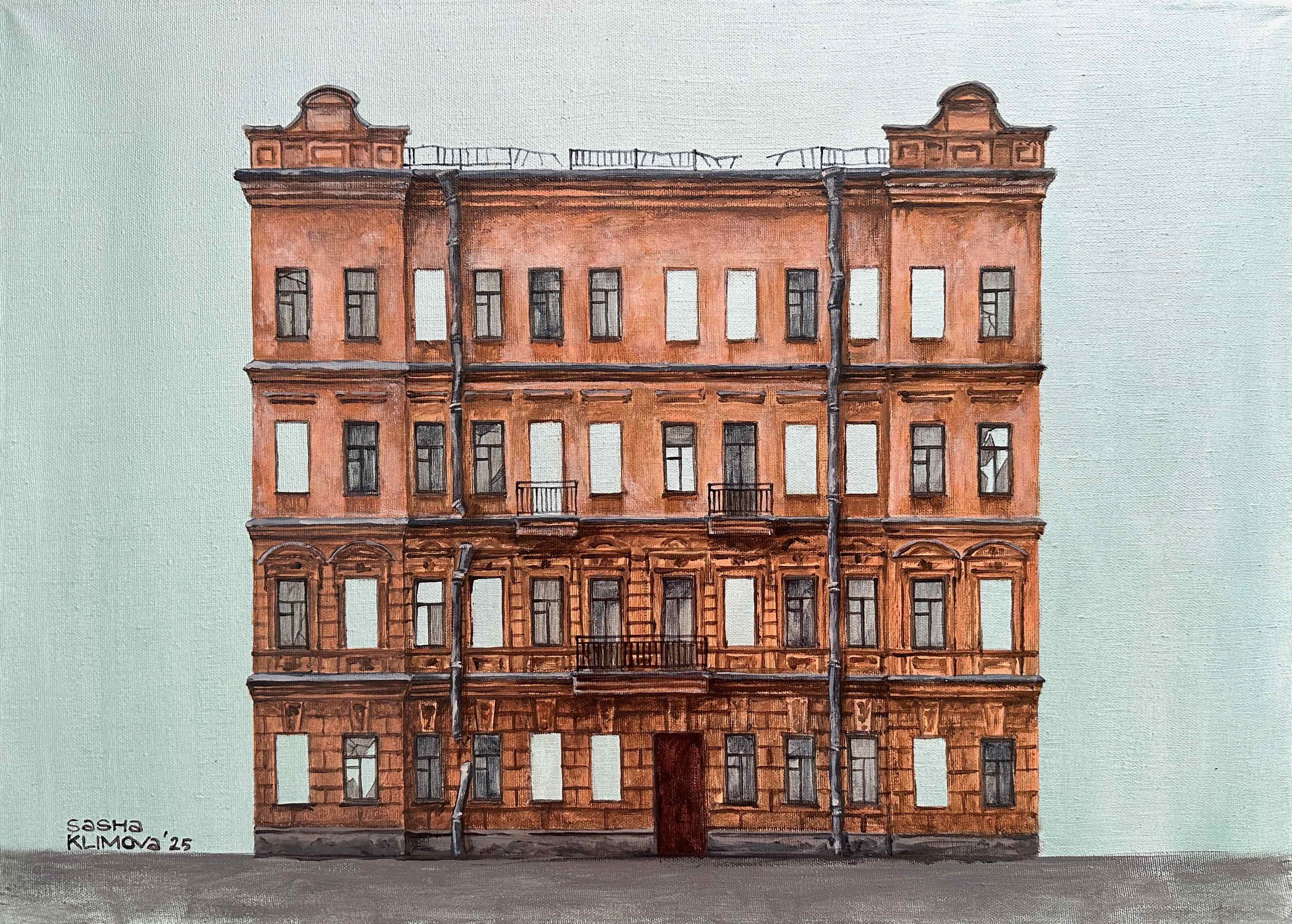 Это «Фасады» петербургской визуальной художницы Саши Климовой. Творчество Саши связано с городом и с тем, как он отражает внутренний мир живущих в нем людей. Визуальным объектом творчества является архитектура, городские пейзажи и их детали, в контексте психологии. Работы Саши призваны вызывать эмоции и подтолкнуть к размышлению о переживаниях и внутреннем состоянии