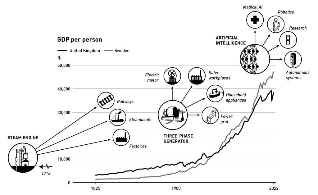 Экономический историк Джоэл Мокир описал механизмы, позволяющие научным открытиям и практическим технологическим разработкам дополнять друг друга и создавать «самогенерирующийся прогресс», ведущий к устойчивому росту. До начала промышленной революции ни научные открытия, ни технологические прорывы не оказывали заметного влияния на долгосрочный экономический рост. Новые идеи не приводили к появлению множества усовершенствований и новых приложений, которые мы теперь воспринимаем как должное и естественное следствие научных достижений.