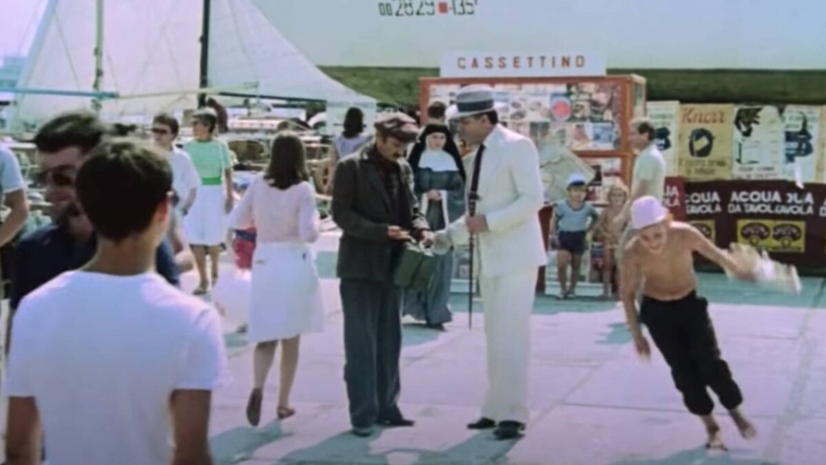 Разыгрывался этот замечательный балаган в Одессе, «исполнившей роль» солнечного Неаполя. Важнее всего для демонстрации сеттинга была сцена красивой прогулки главного героя в пижонском белом костюме по набережной. Для этой цели собрали 200 человек массовки, которых расставляли в нужных мизансценах с восьми утра до вечера, следя, чтобы в кадр не попал какой-нибудь сухогруз с надписью на русском. В книге мемуаров Александр Ширвиндт рассказывал: